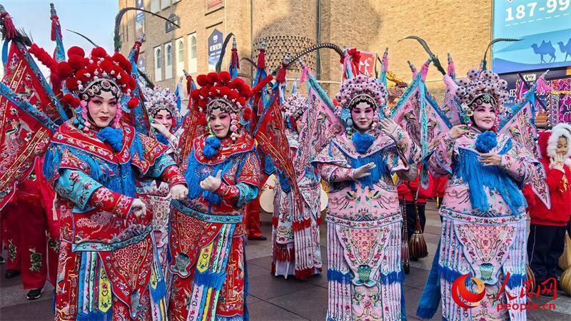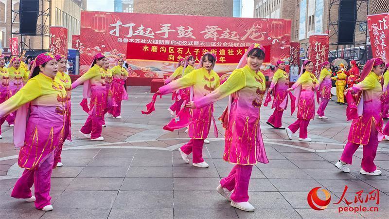 “打起手鼓 舞起龙”乌鲁木齐社火迎新春活动现场,各族群众驻足围观。人民网记者 陈新辉摄